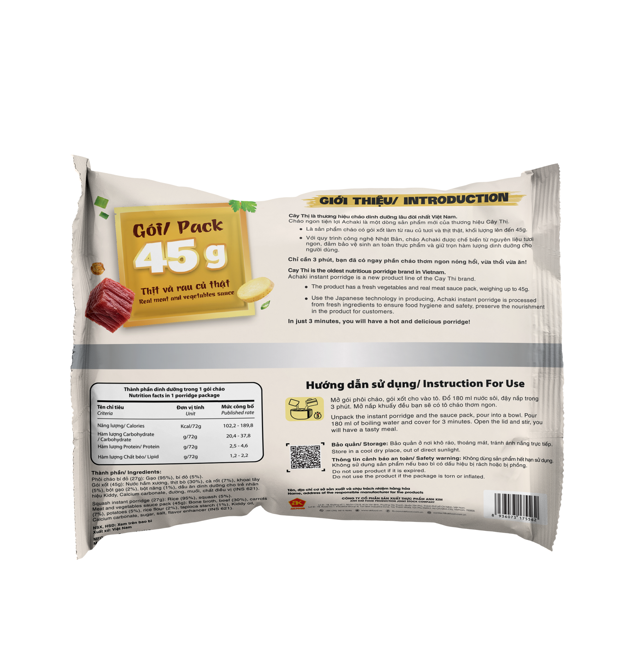 Achaki Beef with carrot and potato instant porridge is a new product of Cay Thi.